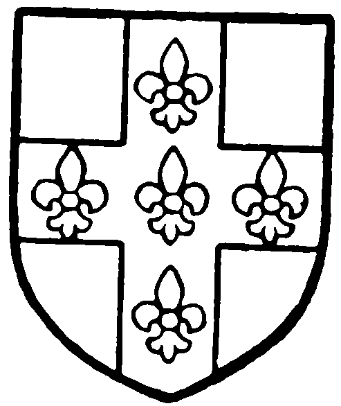 Durham. Argent a cross gules with five fleur de lis or thereon.